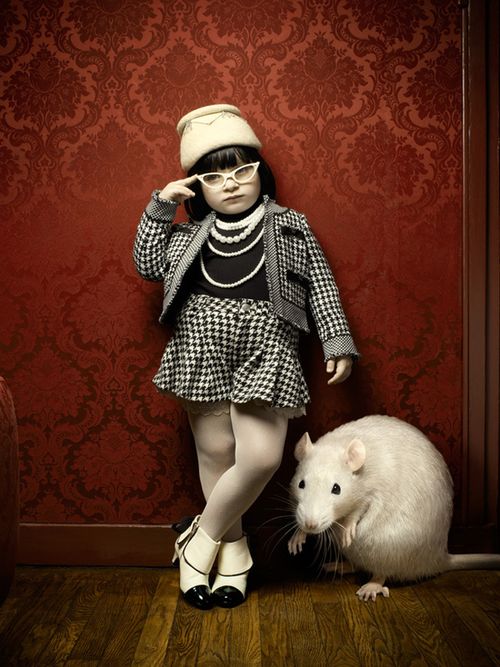 it's weird, I don't find these creepy atall! I agree with the earlier comment that the girl looks quite strong. She sort of looks like she is the princess of her own little world, and completley comfortable with the giant rats that live there! definatley in power of them!